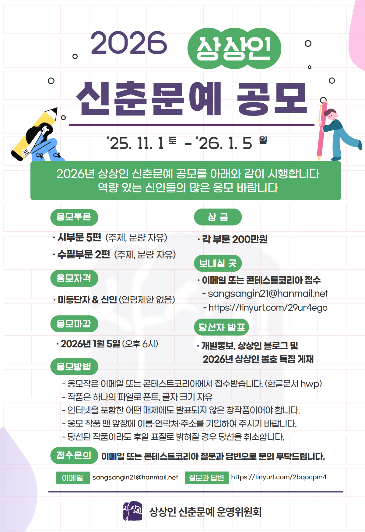 - 공모부분 - 소설: 1,000매 내외, 시: 5편