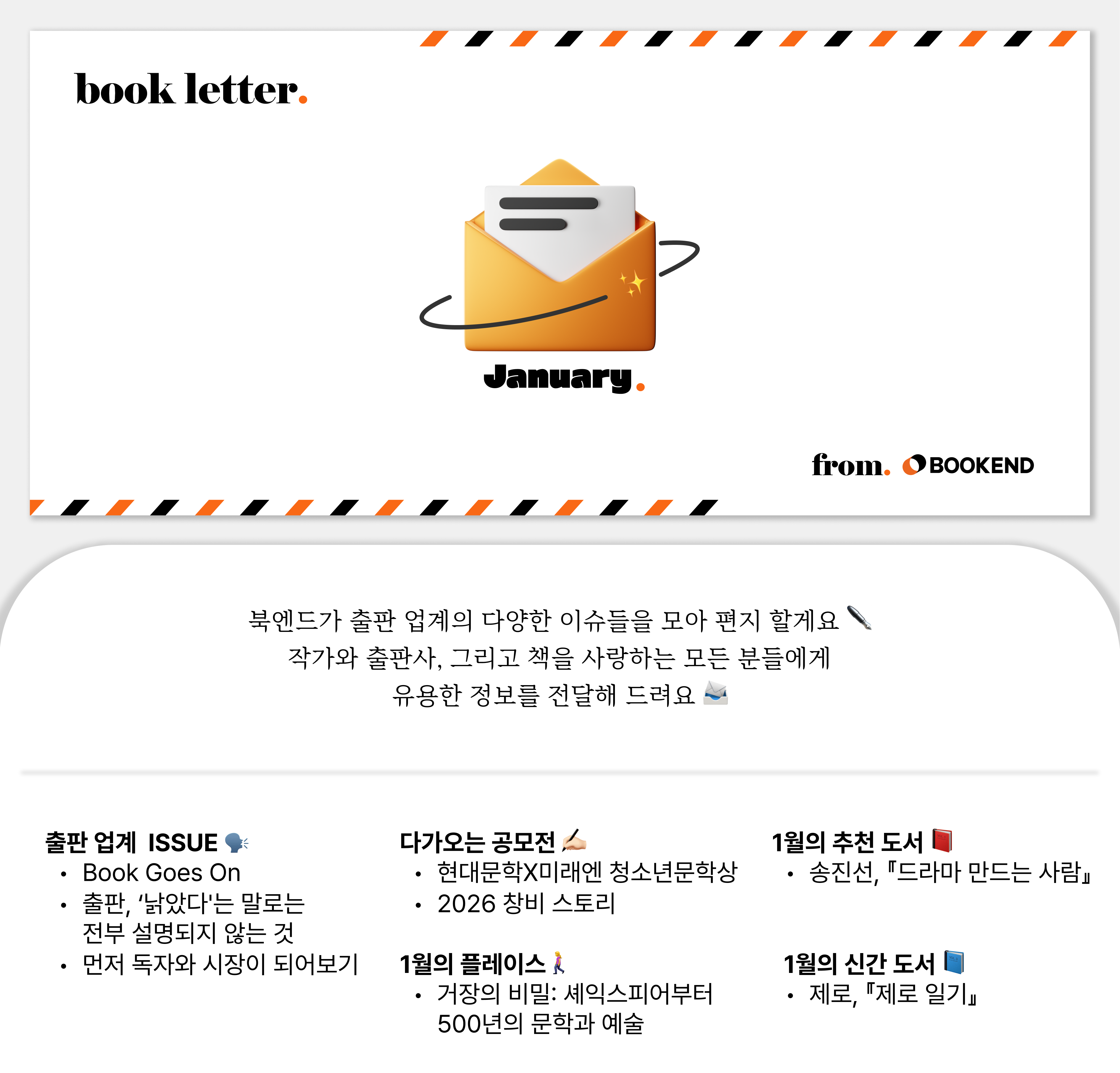 지구는 어제가 오늘이고 오늘이 어제이듯 돌아가지만, 지구인들의 마음은 새해가 되면 괜스레 새로워집니다. 📬 북레터 1월호 🌅